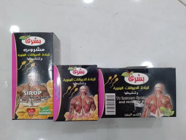 باااك بشرى للزوجين ❤️ مكمل غذائي طبيعي 100% وخالي من المواد الكميائية . قل وداااعا للمشاكل الجنسية 😍 ✅ يتكون من 6 قطع ( مشروب - تيزانا - معجون ) . ✅ ذو نتيجة رائعة بشهادة الزبائن .